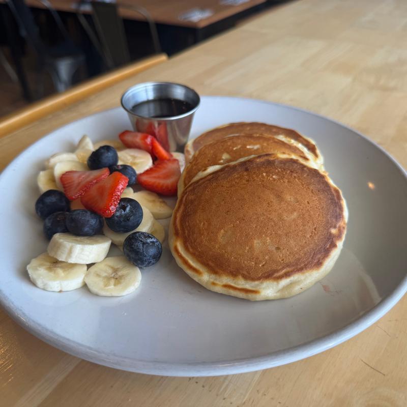 A Classic! A stack of light, fluffy pancakes, grilled to golden perfection. Simple, timeless, and irresistibly good. Add fresh fruit & whip cream for additional cost.