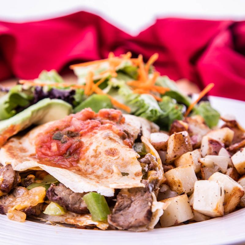 Served with home potatoes or beer-battered French fries and mixed greens | Add Vegetables +$1.50 | Bacon +$2.50, Steak +$4.00 | Chicken +$4.00 | Shrimp +$5.00 | Fresh or Smoked Salmon Filet +$5.00 • Gluten-Free Crepes +$1.00